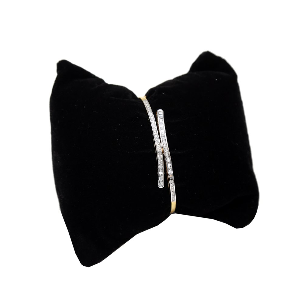 A handcrafted bling that transcends the everyday, making the ordinary magnificent. A creative twist on a familiar object makes it ethereal. The exclusive design resonates with an invincible luxurious charm. The sparkle of diamonds is for eternity. The bracelet has been meticulously rendered by our adept craftsmen with a skillful lineage. The state-of-the art piece proffers fragility and royalty. A classic motif that showcases your adoration for your loved ones.
